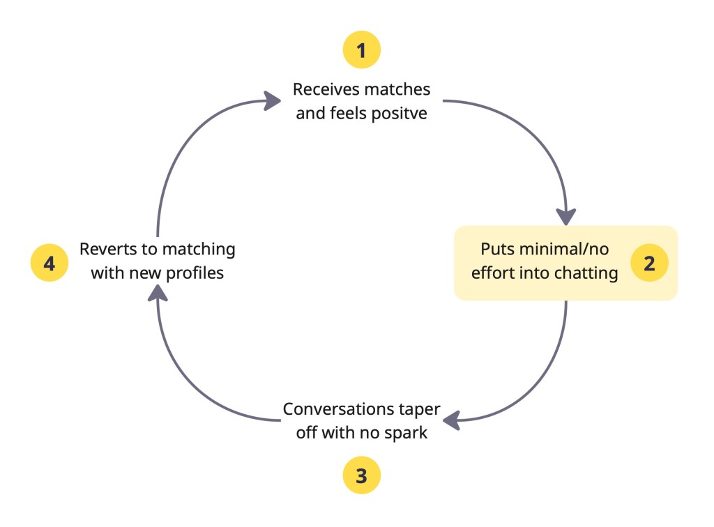 Users are conditioned to chase the dopamine high from matching rather than build meaningful connections.