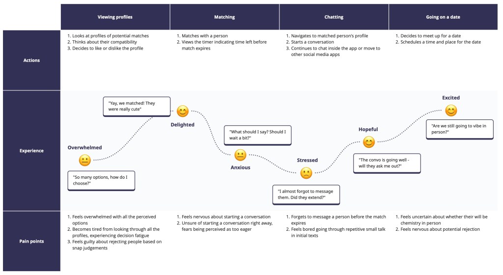 Based on these personas, an overview of their dating experience has been illustrated below.